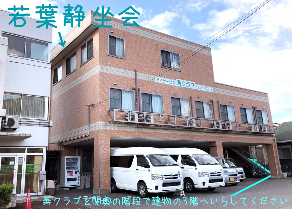 千葉市若葉区小倉町の若葉静坐会の場所は千葉駅から車で20分ほどにあるケアサービス寿クラブの建物の3階です。こちらで毎週木曜日の夕方に座禅を行っています。